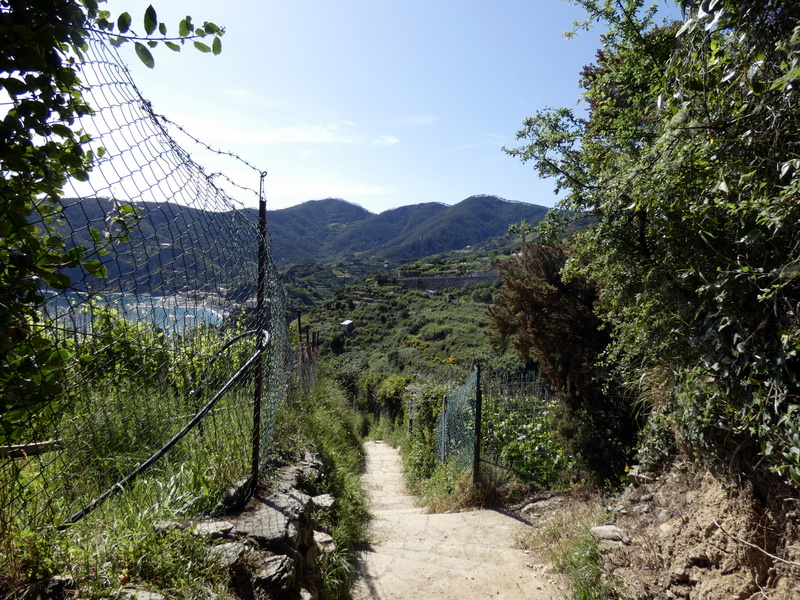 After the two visits, we went back to Monterosso for lunch and vegetated a bit before setting out on a hike from Monterosso to Vernazza. It is billed as 3.7 Km, but Endomondo said it was just over 3 miles. We knew going in that there were big hills to hike over. They were a big reason the 4 minute train ride was billed as a two hour walk. It was brutal. You have to pay $17 for the privilege of torturing yourself on this walk. We did have 48 ounces of water to fortify ourselves as we went and finished half of that along with donating about 8 ounces to a pair of hikers going the other way who were out (there is no place to refill water along the way). We soldiered through over 2600 feet of elevation gain -- the first mile or more was all up hill. Once we reached a flat part, we thought it would get easier. WRONG. There was yet more elevation to gain and lose. I was sure we could hike it in less than 2 hours, but it took 2 hours and 20 minutes from the hotel to the main street of Vernazza. Fortunately, we were able to take the $9 train ride back.